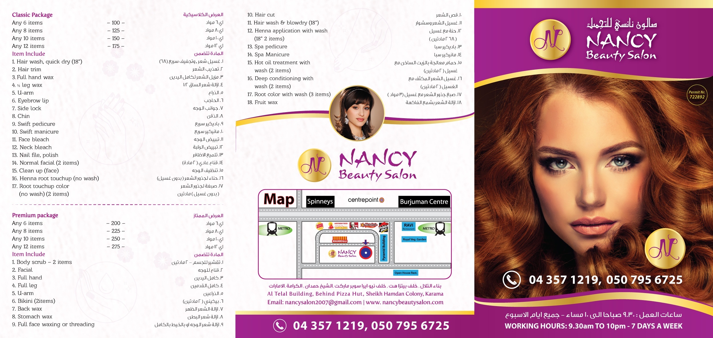 Nancy Beauty Salon is one of the full-service beauty salons located in Karama, Dubai. Over the past twelve years, it has evolved as a competent, well-organized, and trustworthy salon in the field of beauty and aesthetics.